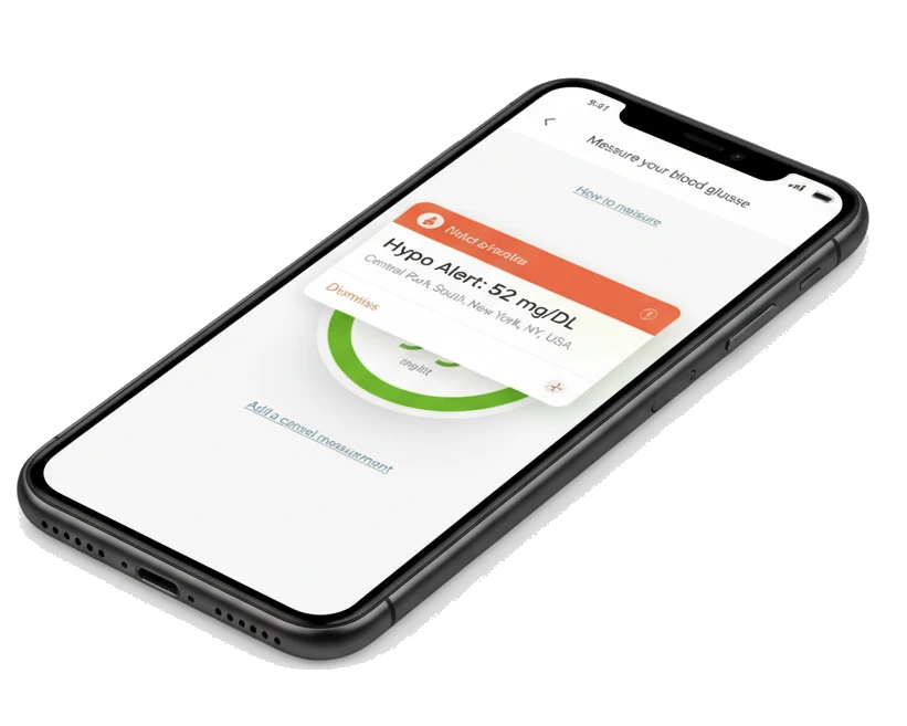 - Hypo alerts with GPS text notifications