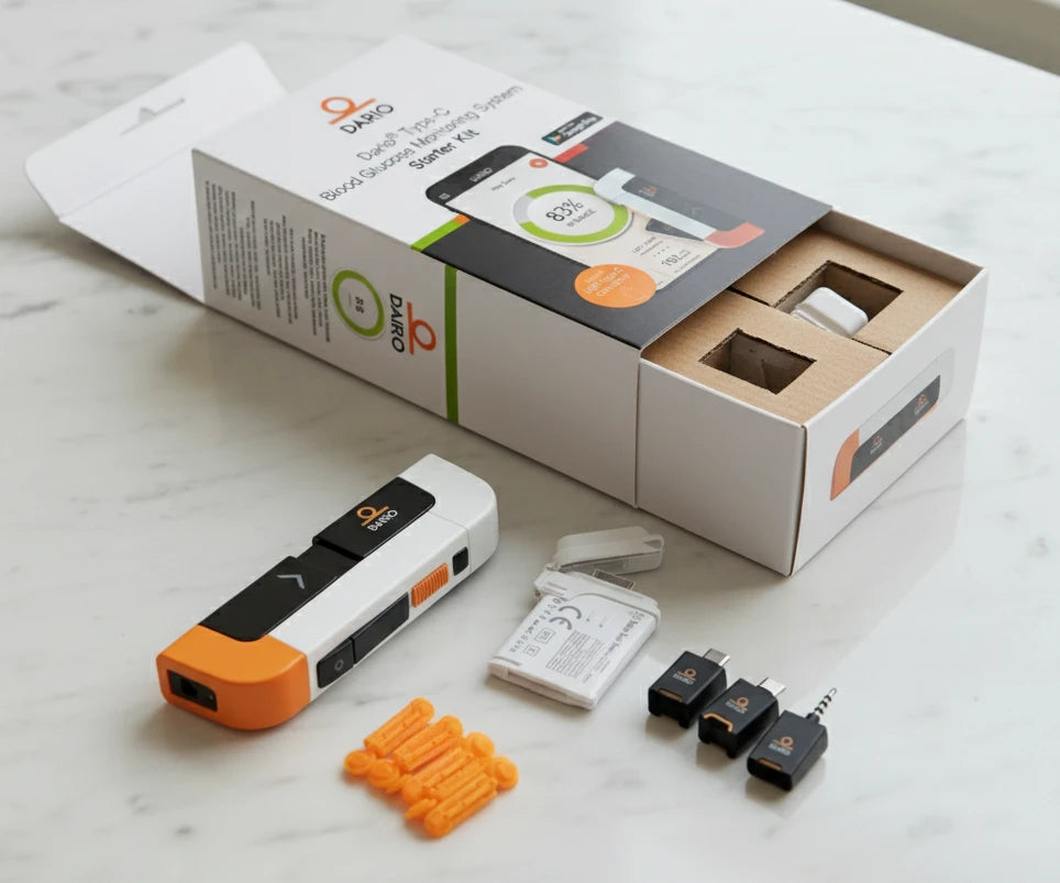 Dario replaces outdated, bulky glucose meters with a modern, pocket-sized system that connects to powerful app insights—giving you more clarity, more confidence, and more control every day.